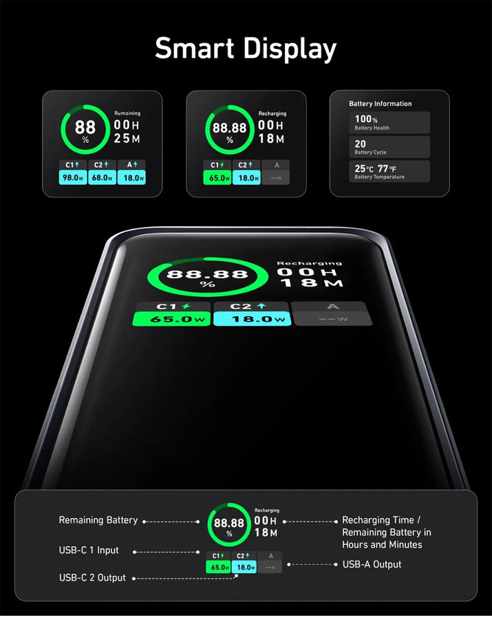 Answer 2: The charging time for the power bank varies depending on the input source. Using a compatible USB Type-C charger, it can be fully charged in approximately 6-8 hours. For faster charging, make sure to use a high-wattage charger.