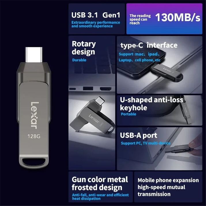 Lexar D400 Dual 32GB 64GB 128GB 256GB USB Type C Drive