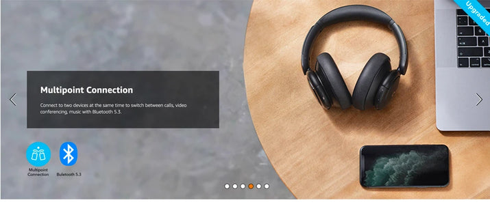 Answer 1: These headphones feature Active Noise Cancellation to block external sounds, Bluetooth 5.0 for wireless connectivity, a detachable audio cable for wired use, and a built-in microphone for calls. They also support dual connection for increased versatility.